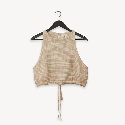 POKOLOKO - Crinkle Keyhole Tank Top - Beige
