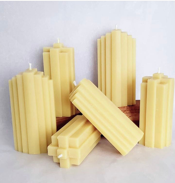 Reclaimed Bee Beeswax Candles with a modern twist. Reclaimed Bee uses locally sourced ingredients from small businesses to support our community and local beekeepers. Here is candles of the Art Deco Collection.