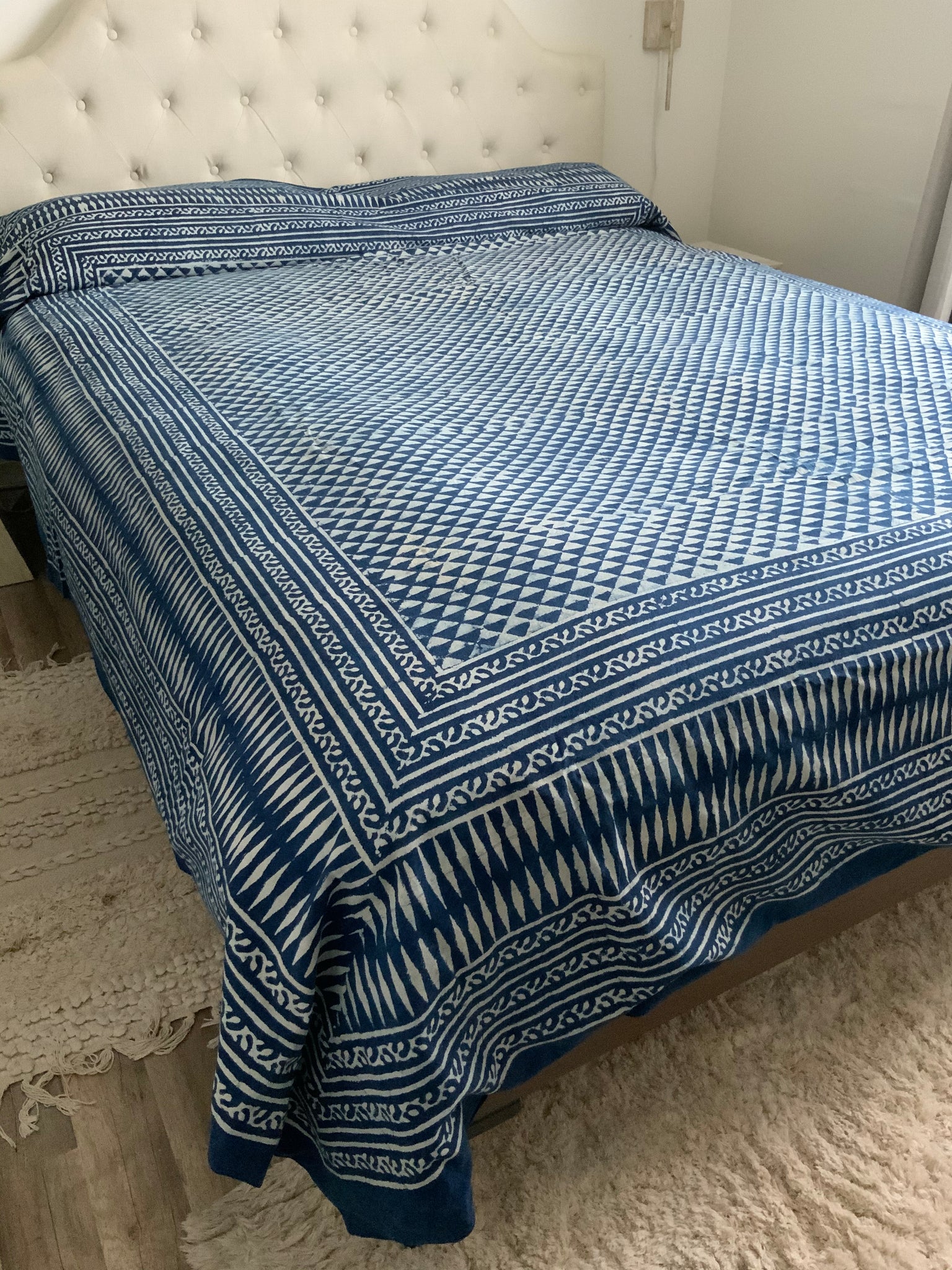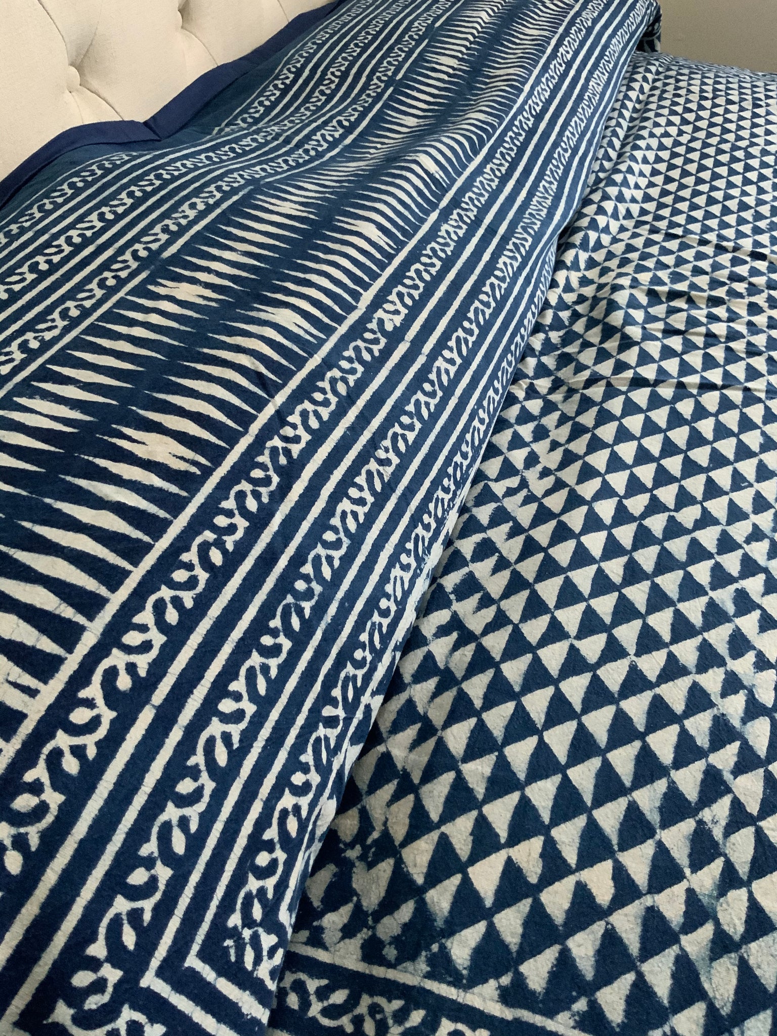 These stunning, on trend, Queen king-sized blockprint Indigo Duvet Covers are 100% gorgeous and 1000% chic. Each one is more fantastic than the next and are all One-Of-A-Kind, hand made perfection.