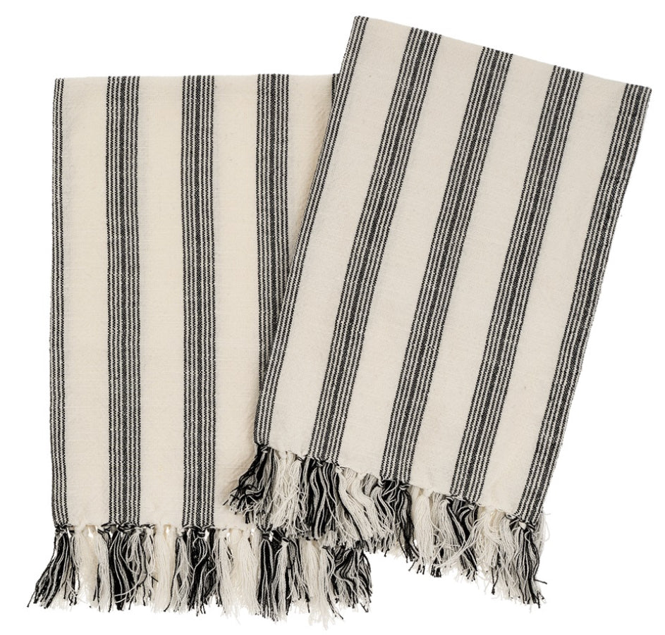 French Stripe Hammam Hand Towels S/2, Black 1-1004