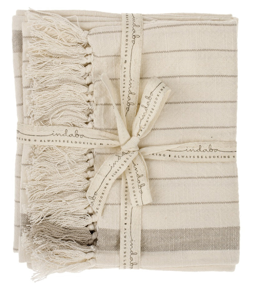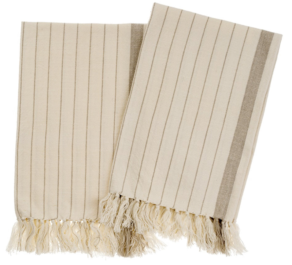 Pinstripe Hammam Hand Towels S/2, Stone 1-1017