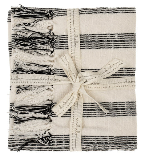 French Stripe Hammam Hand Towels S/2, Black 1-1004