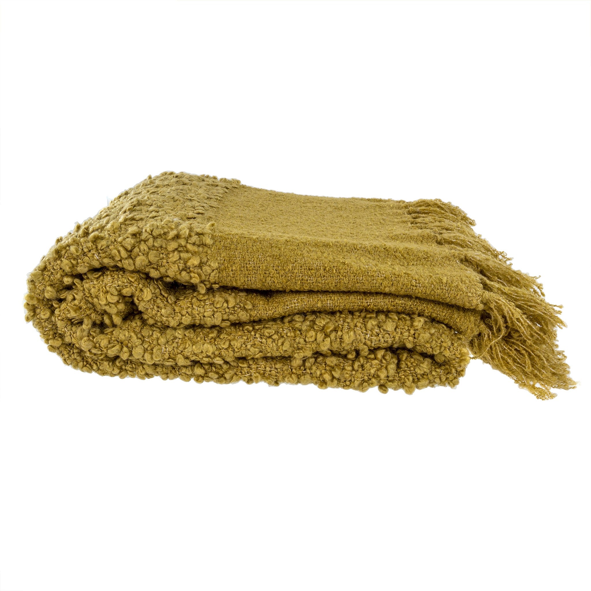With an appreciation of handcrafted technique, rich texture is handwoven through the wool blend Chalet Boucle Throw. With tactile woven boucle, and tassel edging down two sides, they are warm and comfortable. Machine Wash Gentle. Chalet Boucle Throw Olive.