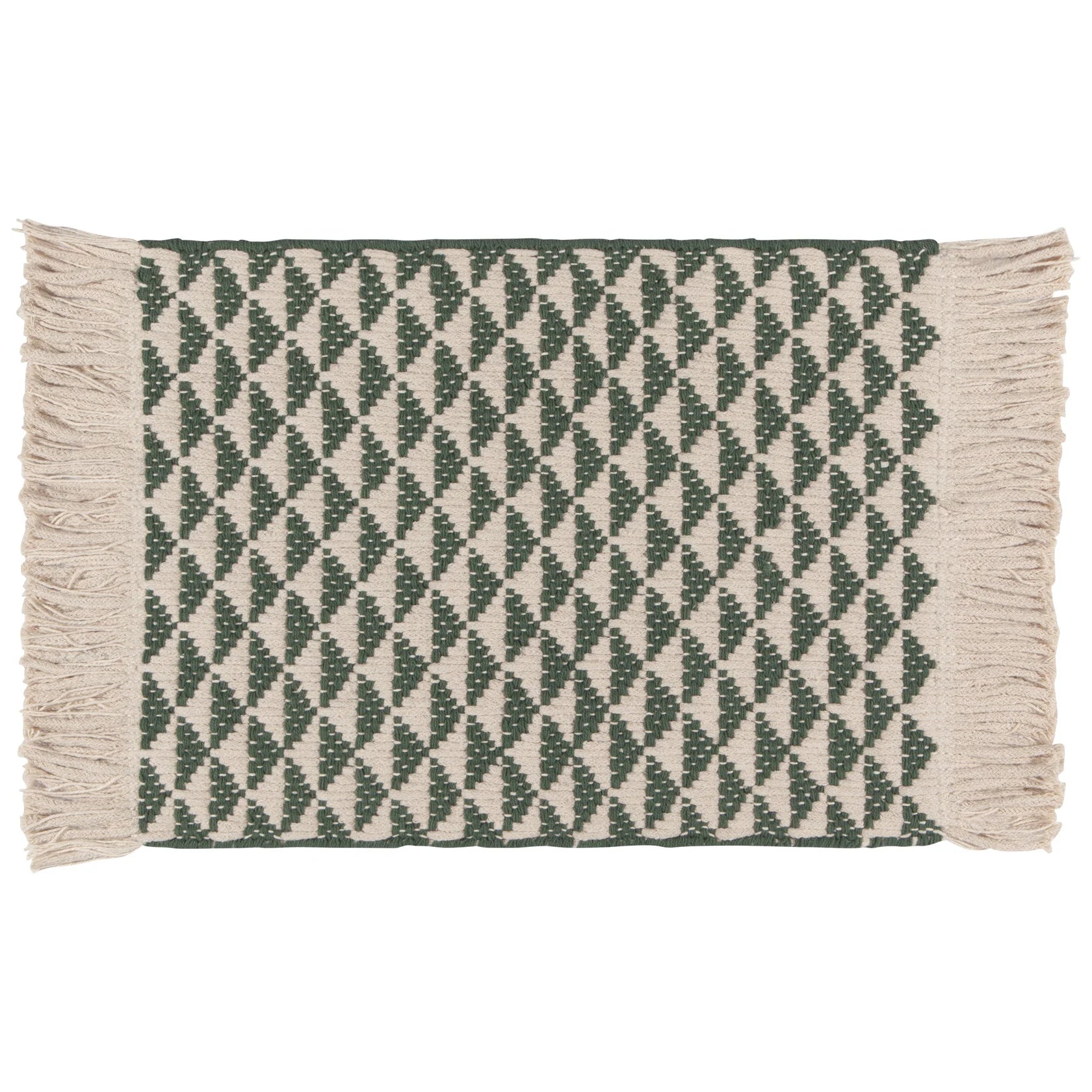 A sea of woven triangles creates geometry on this thick cotton placemat. A rich fringe edge adds textural interest to the table.