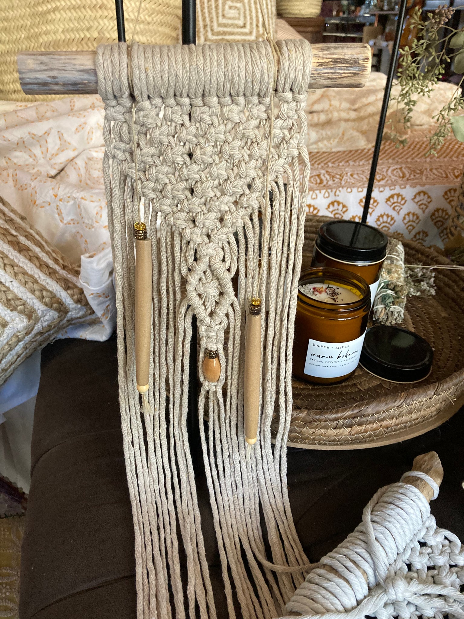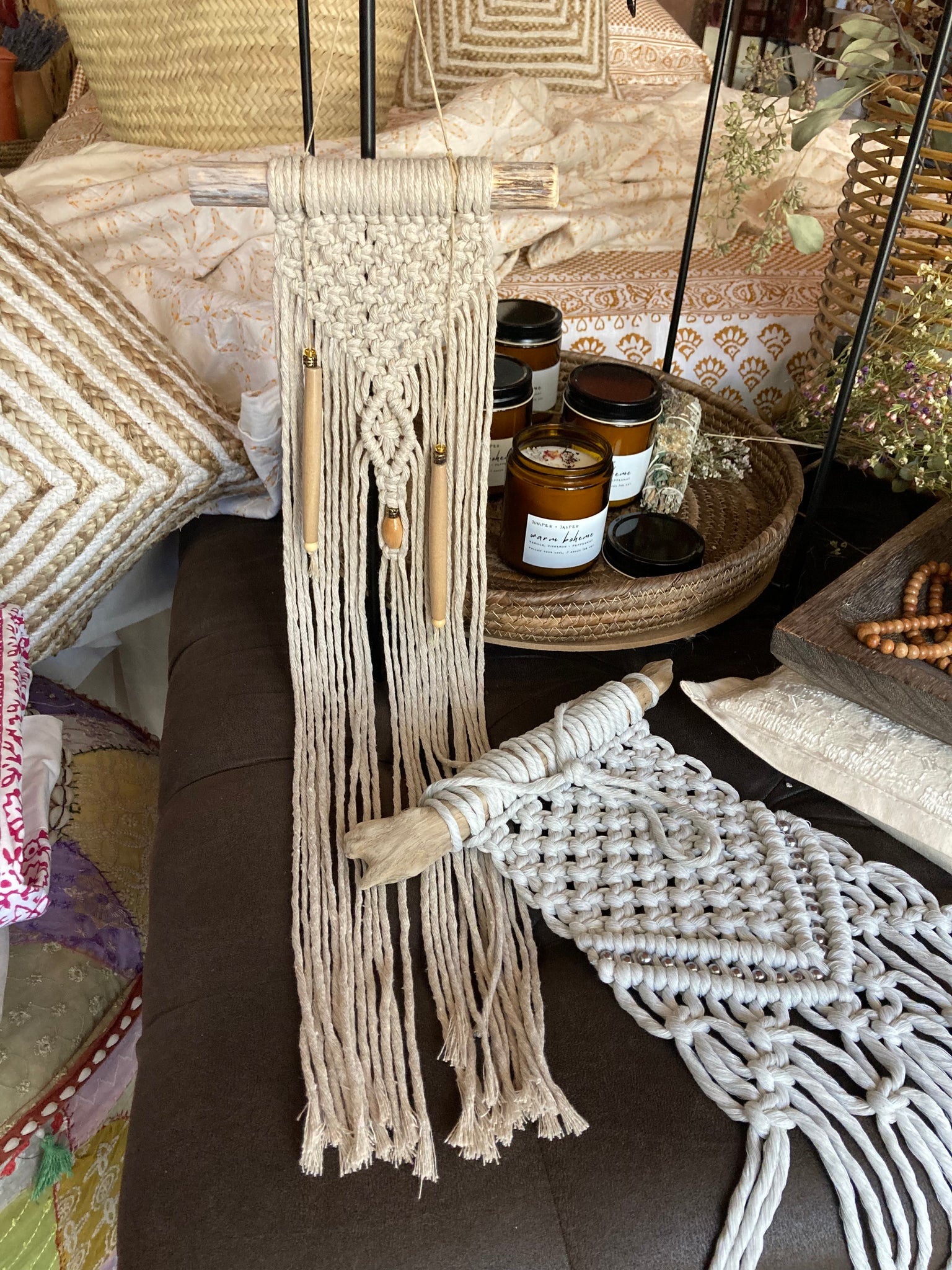 Beautifully made macramé wall hanging. Made from canadian hemp hangs on a piece of driftwood.