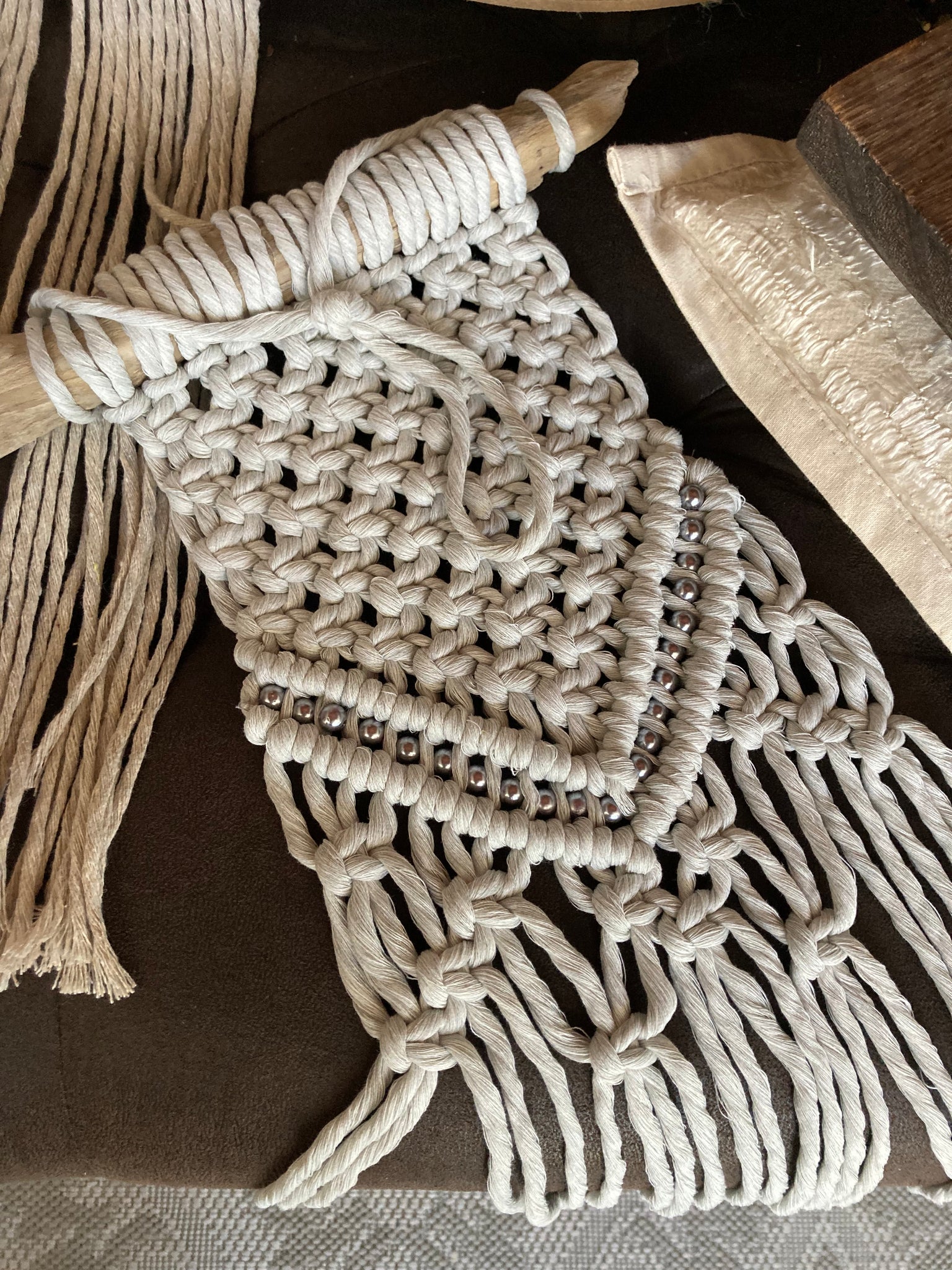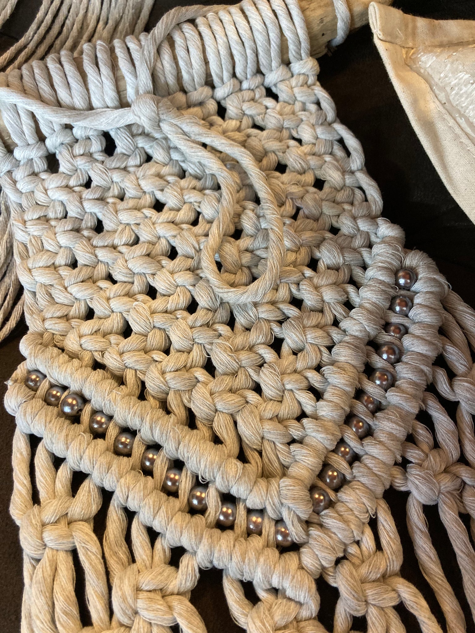 Beautifully made macramé wall hanging. Made from canadian hemp hangs on a piece of driftwood.