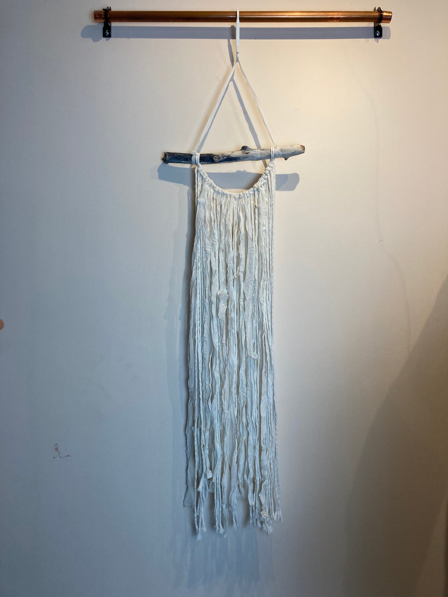 Macramé Wall Hanging - Upcyled Sari Silk White