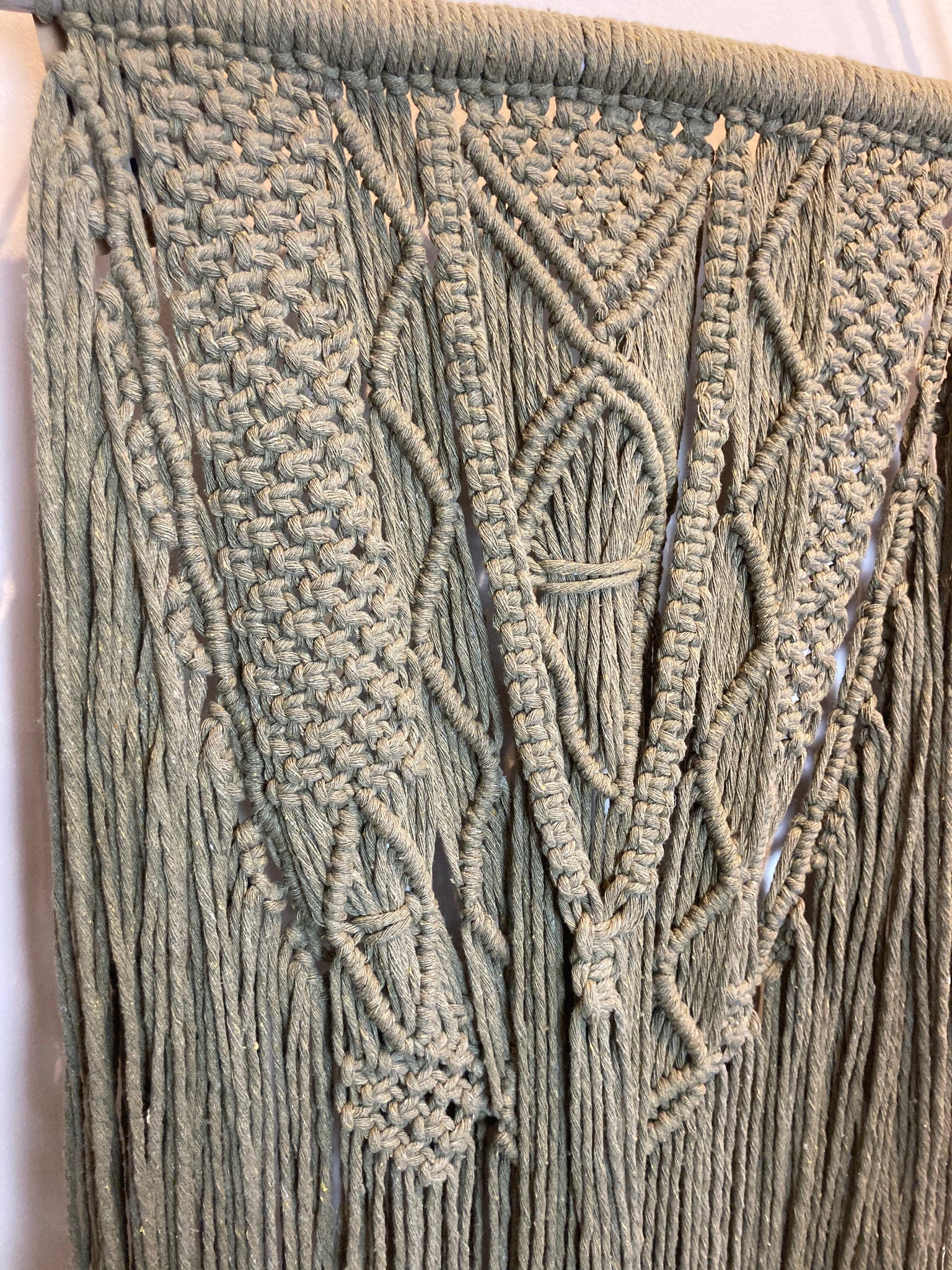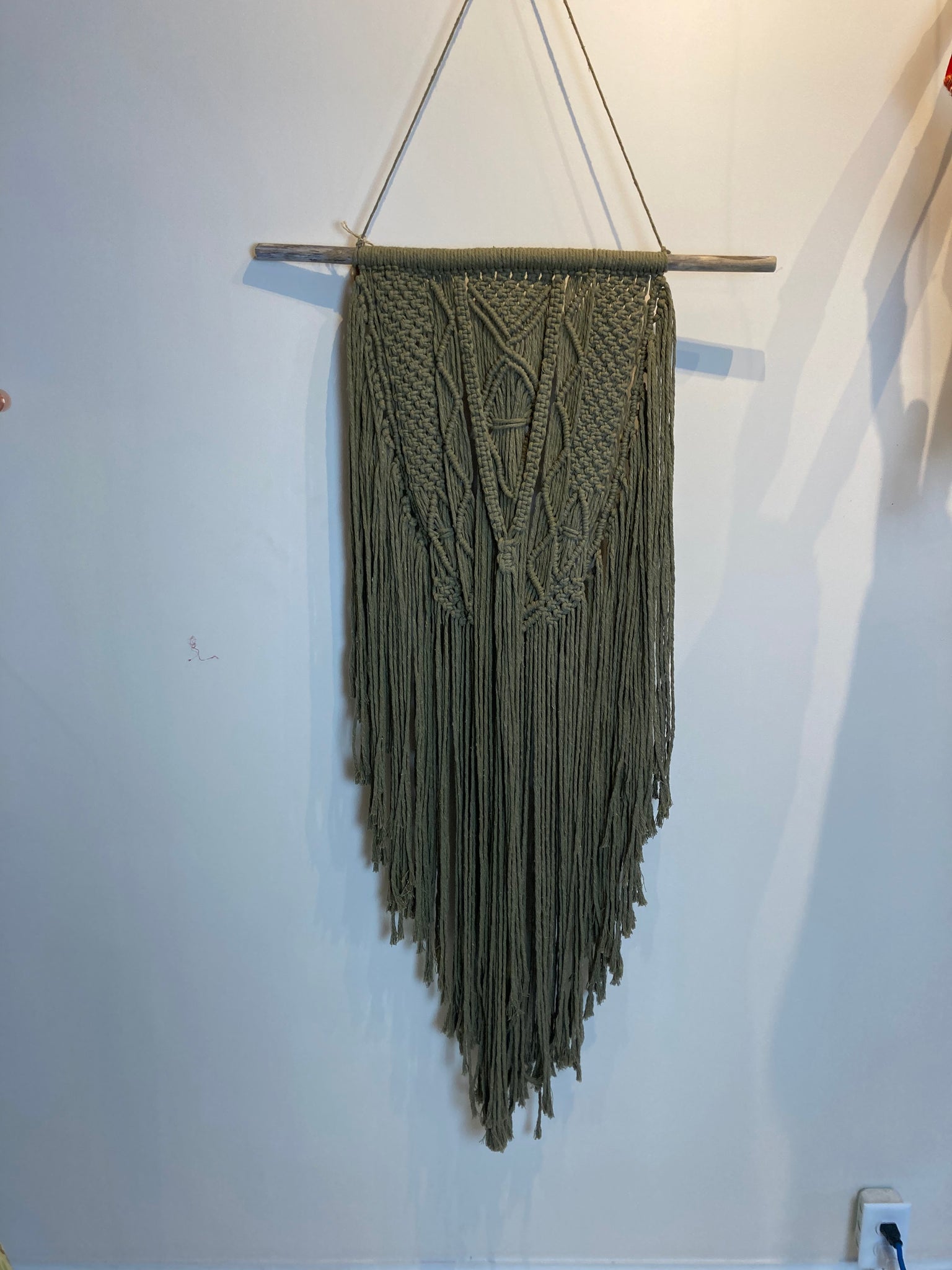 Beautifully made macramé wall hanging. Made from canadian hemp hangs on a piece of driftwood.