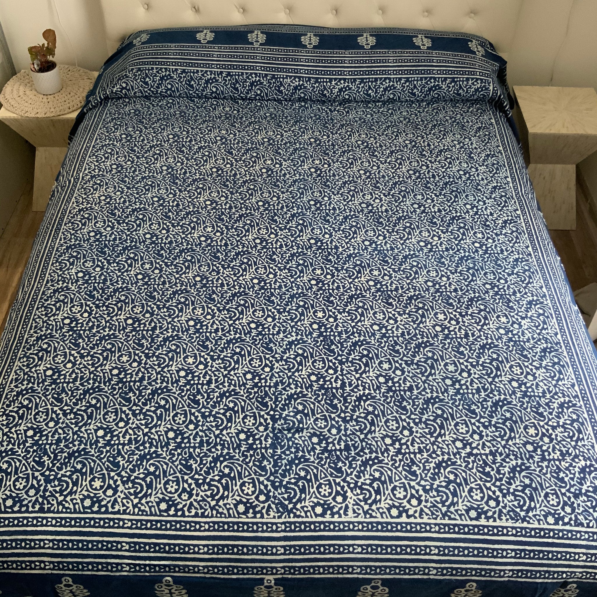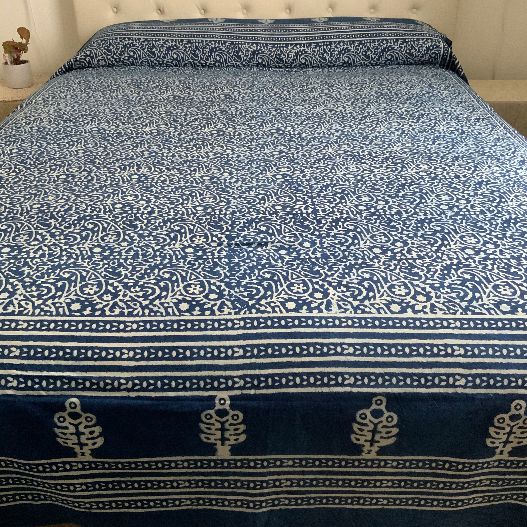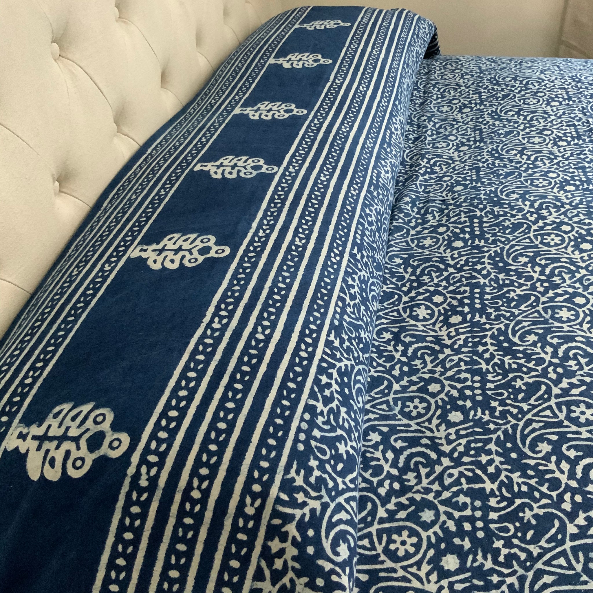 These stunning, on trend block print batik Indigo bed covers are 100% gorgeous Indian cotton and 1000% chic. They can also be used as table cloths, wall hangings, sarongs, picnic blankets and just about anything else that calls for a dash of fab. Hand made and all One-Of-A-Kind. Imperfections should be anticipated with natural fibres and hand-worked goods.