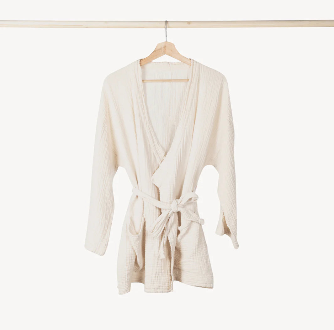 This two-layer crinkle muslin texture is incredibly soft on the skin, and feels lightweight, yet substantial when worn. Designed in an oversized style, The Crinkle Cardigan has long sleeves, is belted with exterior belt loops, and has two deep pockets in the front.